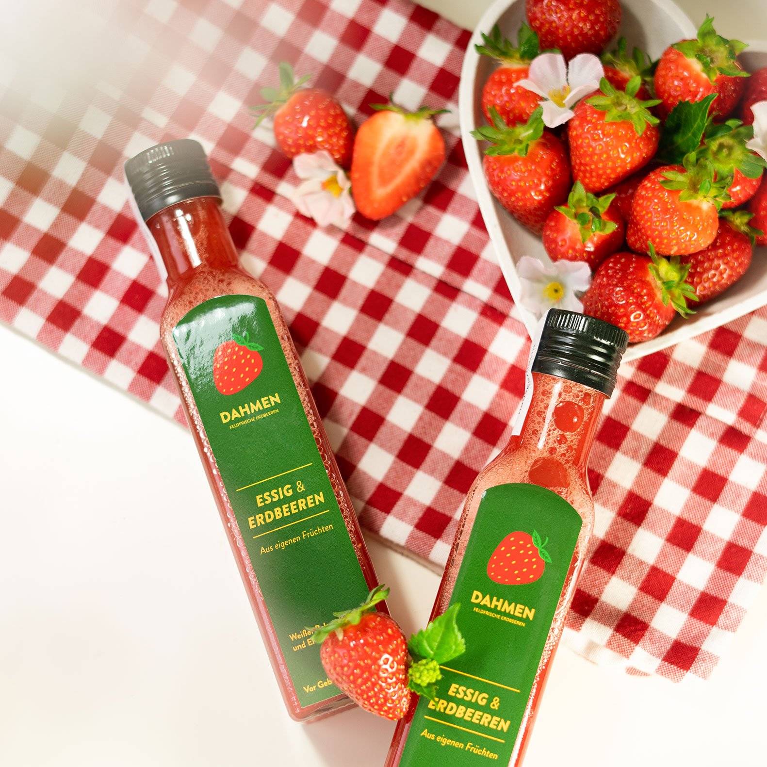 Leuchtendrot und duftend aromatisch, so präsentieren sich die ganze Saison über unsere beliebten Erdbeeren. Auf unseren Feldern können Sie die Erdbeeren selber pflücken und an unseren Verkaufsständen erhalten Sie zusätzlich zu den frisch geernteten Erdbeeren noch zarte Frühkartoffeln aus der Region, liebevoll selbst hergestellten Erdbeeraufstrich, Erdbeersirup und Erdbeeressig, sowie Tortenböden und Torteletts aus regionalen Bäckereien.